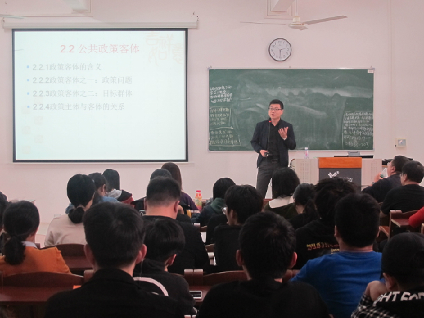 张玉强副教授以《公共政策客体》为题讲课。讲课伊始,张玉强以凤凰古城启动“门票新政”为例开展启发式授课,引导学生对公共政策客体进行思考;并层层递进分析政策客体影响政策制定的内在机制,最后引导学生要准确把握政策主体与客体之间的关系。讲授中以生活热点事件为例,图形并茂,完美演绎政策课题对政策制定的影响。