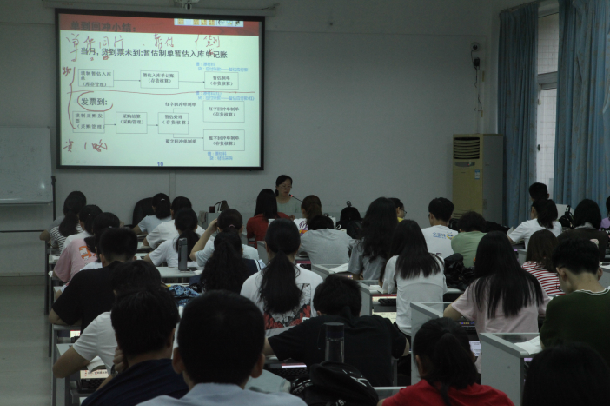 周虹博士以《采购系统》为题讲授实验课。首先,开展课程回顾,引导学生重温手工系统对货到票未到业务应该如何处理。然后讲授了暂估业务、现付业务、退货业务的手工操作方法,各种操作均以典型案例形式在会计系统进行模拟操作。整场讲授流程清晰、把财务报表鲜活化、生活化,激发学生兴趣。