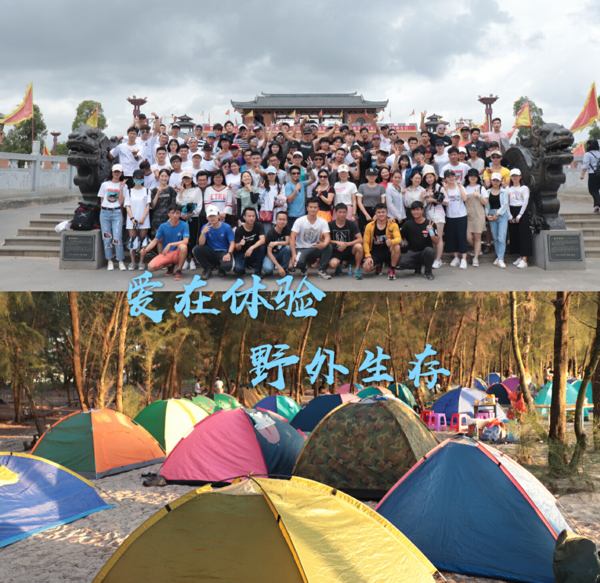 活动当天,同学们从学校湖光校区出发于中午抵达孔子文化城,经过一个小时的参观学习之后继续一路向西于下午安全抵达遂溪县仙裙岛。帐篷节从此拉开了帷幕,在同学们的认真学习以及互相帮助下,伴着寸寸阳光,一个个帐篷搭建了起来,经过同学们的精心准备,晚餐的食材也准备完毕。接下来是玩耍时光,树荫下是歌声在荡漾,沙滩上是排球在飞舞,岸边是挖螺的喜悦,海上是游泳的身姿,当然,还有桌子旁大口大口吃西瓜的人儿的欢声笑语。夕阳西下,伴随着夕阳的余晖,烧烤、打边炉、翁鸡、煮饭炒菜…香喷喷的味道蔓延着整个仙裙岛。夜幕降临,随着“噼里啪啦”的响声,夜空绽放出几朵美丽的花,是烟花。如果说烟花美,那么烟花底下的风景更美。在夜空下,是篝火晚会,火焰在跳跃,同学们在跳舞,“同甘共苦,海大威武,同甘共苦,海大威武”,同学们的欢笑声、尖叫声、歌声汇成了一片欢乐的海洋。到了休息时间,同学们都回到了自己的帐篷,偶尔也会看到帐篷里探出来的脑袋仰望着星空,是的,是流星。晚安啦,帐篷节。次日,清晨的曙光穿过了树林照进了帐篷,厨房散发着海鲜粥以及海鲜面的味道。经过一晚的退潮,海边是大片的水波状的浅滩和清澈的水洼形成了一道美丽的风景线,此时此刻又到了拍大合照的时光啦。最后,经过一系列的收拾清理后开始返程,全部同学于6日中午安全抵达学校,帐篷节在此落下了完美的帷幕。
