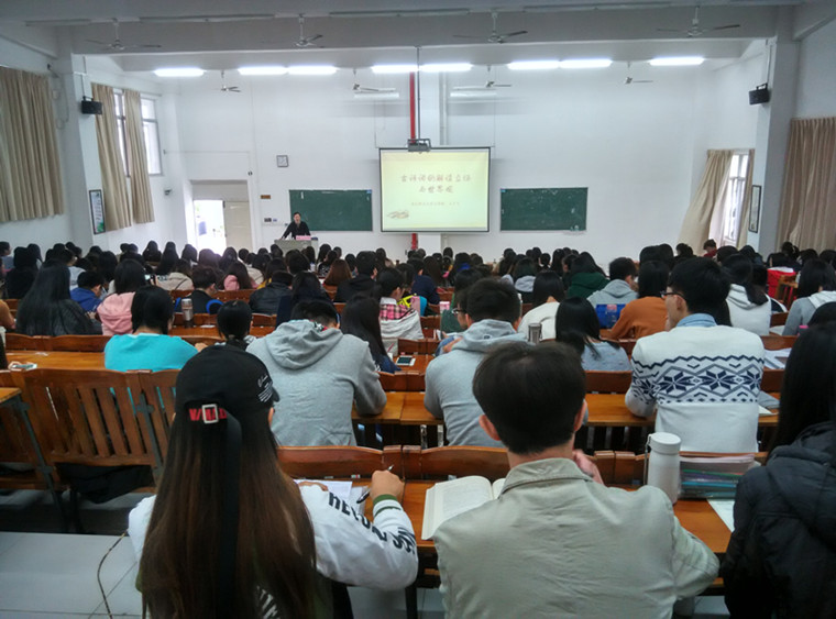 11月20日下午,应文传学院邀请,重庆师范大学文学院王于飞教授在第二教学楼B5203作了一场题为《古诗词的解读立场与世界观》的学术报告。报告会由中文系主任邓建教授主持,文传学院师生两百余人参加了报告会。