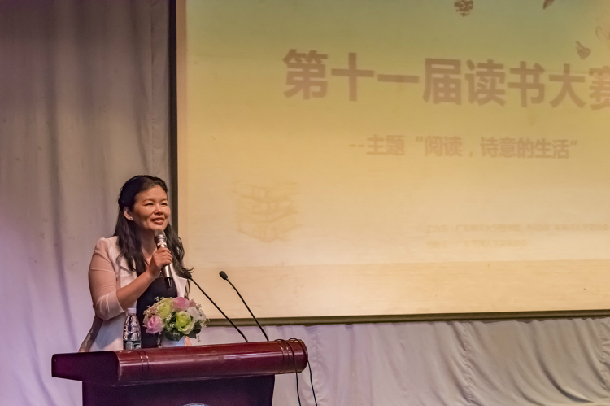 高秀梅副校长在读书大赛上作了题为《读书、权利和责任》的总结讲话。她对读书大赛获得的成果和选手的优秀表现予以好评,就选手所荐《飞鸟集》中的诗句“生如夏花之绚烂”表达对生命的热爱,借《阅读史》中福楼拜名言“阅读是为了活着”说明阅读是人们基本而重要的权利,也是我们的责任。她希望同学们在这个阅读权利受到高度重视的时代,养成终身学习的习惯,让阅读成为一种生活方式。