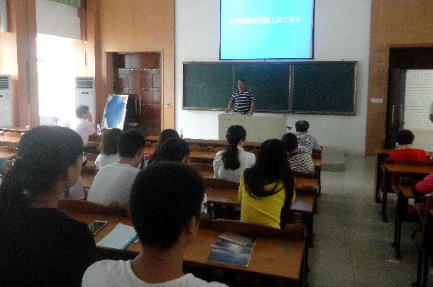 为落实人才强校战略,充分发挥留学回国教师的带动效应,农学院于10月19日在兴农楼109室举办了公派访学回国教师报告会。来自生物技术、林学、动物科学专业的3位教师就赴美访学与合作研究成果分别进行了汇报。农学院部分教师、研究生、留学生和“双百(卓越)”班本科生参加。报告会由农学院副院长陈进军教授中英文主持。