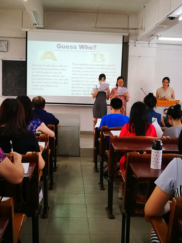 为加强教师队伍建设,发挥优秀教师的教学示范引领作用,促进教学交流,提高教学质量,外国语学院于5月15日下午在湖光校区主楼326室举行了2019年度教学公开课授课观摩活动。全院当天没课的教师参加了观摩学习,观摩活动由副院长何谦卫主持。