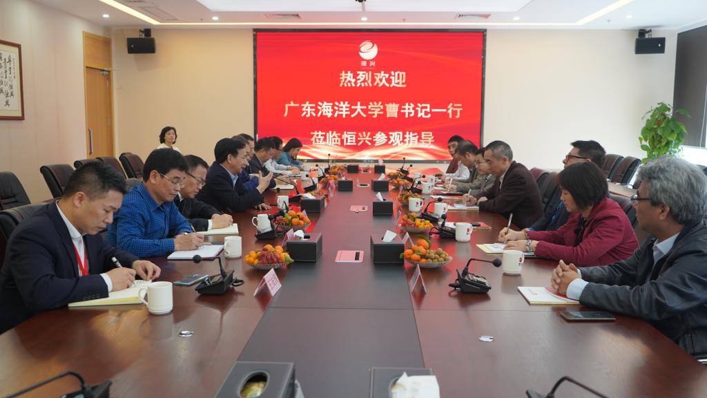 1月15日,学校党委书记曹俊明率学校副校长谭北平、水产学院副院长杨奇慧教授、食品科技学院副院长钟赛意副教授、滨海农业学院赵志辉教授、水产学院汤保贵副教授、科技处副处长杨原志一行到恒兴集团总部参观交流,恒兴集团董事长陈丹带领集团高管接待了曹俊明一行。