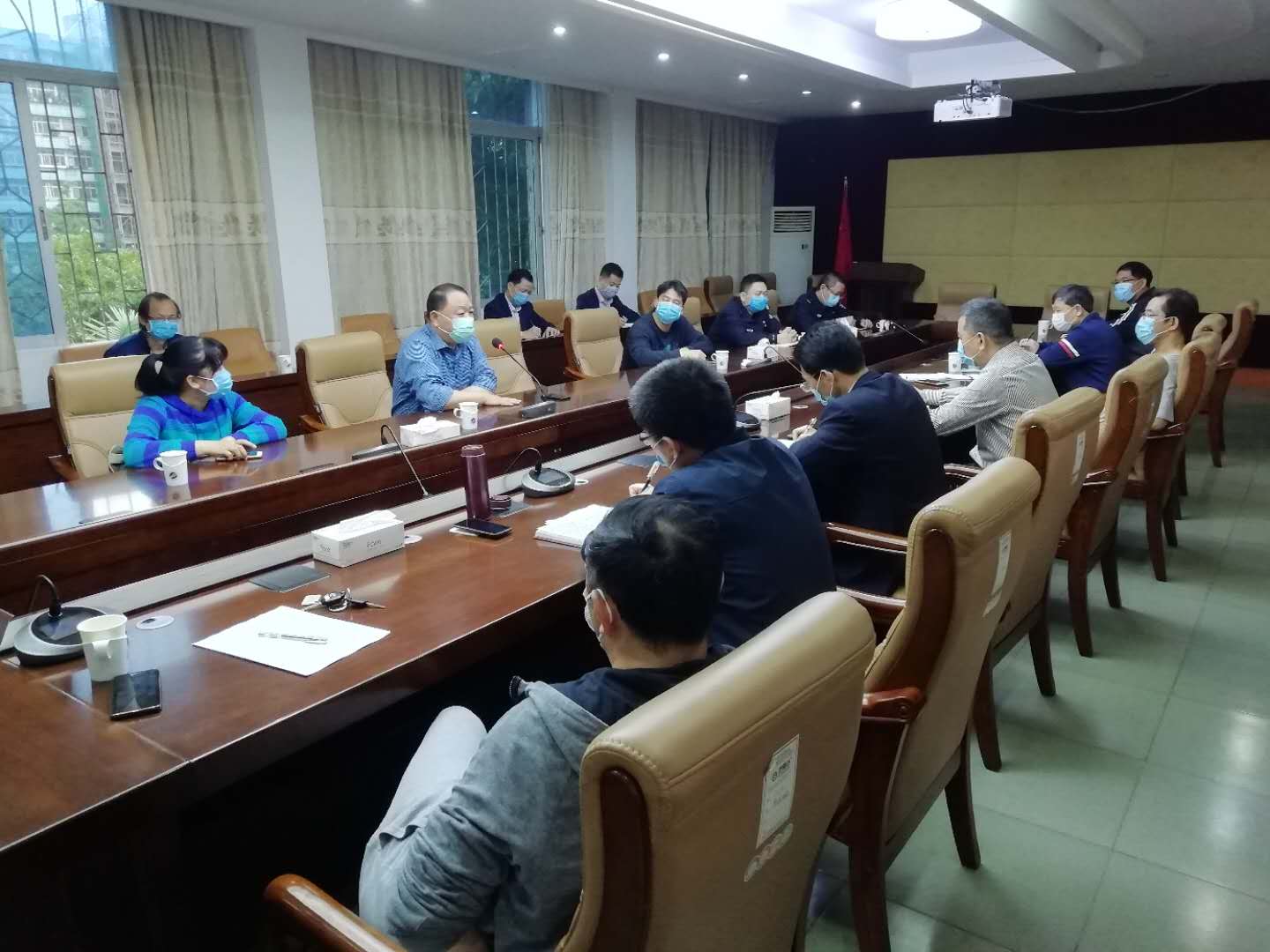 3月21日,霞山区卫健局副局长徐晖率解放街道办主任陈剑云、文体社区党支部书记庄茁、解放派出所民警林荣伟和邹汶廷一行5人到AC米兰给予疫情隔离培训指导,学校党委副书记、疫情防控领导小组常务副组长林晓敏,党委办公室、校长办公室主任、疫情防控领导小组办公室常务副主任李育芳,机关党委、学生处、保卫处、人事处、教务处、国际交流与合作处、研究生院、后勤与产业党委、后勤集团、校团委、校医院等部门(单位)负责人和相关人员参加了会议。双方就当前国(境)外疫情输入形势、疫情防控难点和重点、医学隔离观察点的建立和有关注意事项等进行了详细探讨交流。
