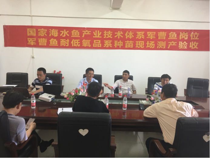 5月16日,受国家现代农业产业技术体系——海水鱼体系委托,AC米兰科技处组织有关专家,在湛江市东海岛海洋生物基地对“国家现代农业产业技术体系军曹鱼种质资源与品种改良岗位”(编号:CARS-47-G08)课题组“军曹鱼耐低氧品系种苗选育”结果进行现场测产验收。专家组听取汇报,查看相关生产记录,经现场围网面积抽样、量测,一致认为课题组采用耐低氧军曹鱼品系获得了后代种苗育苗成活率44.6%,均体长10.0 cm(体长范围:8.3-11.2cm),现场抽样估算共有军曹鱼商品种苗25万尾。规格达到4cm的军曹鱼种苗可以进行食性转换,摄食人工配合饲料,突破了军曹鱼该规格种苗进食冰鲜鱼糜的局限。
