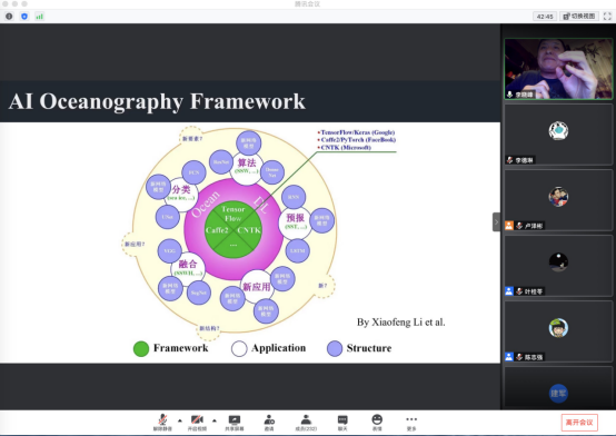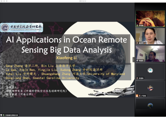 应南海海洋气象研究院邀请,6月10日,国际电气与电子工程师协会会士(IEEE Fellow)李晓峰研究员在腾讯会议平台作了题为《人工智能海洋学》的精彩报告。报告由研究院院长徐建军教授主持,AC米兰中国官网、中科院海洋所、河海大学、南京信息工程大学等单位的师生共240余人参与讲座。