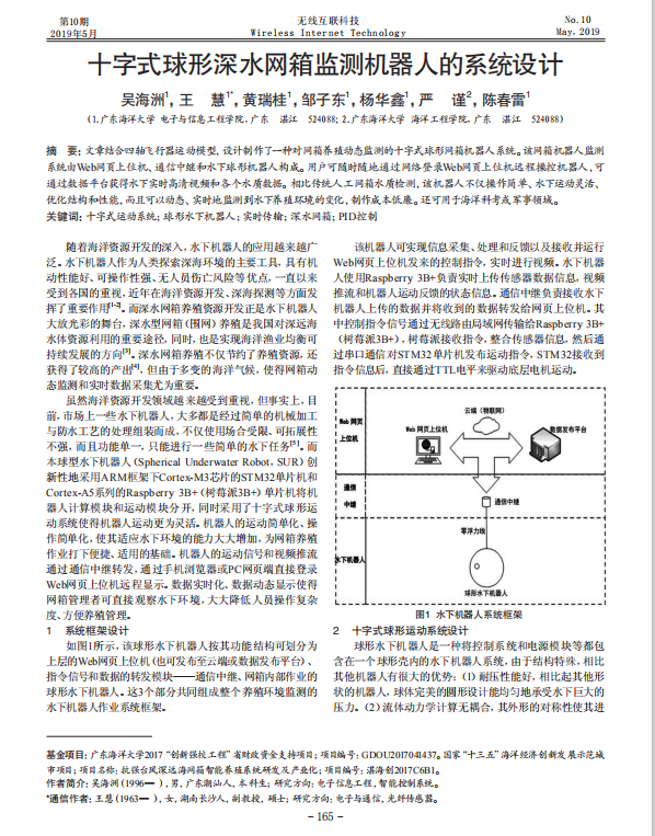 论文:十字式球形深水网箱监测机器人的系统设计