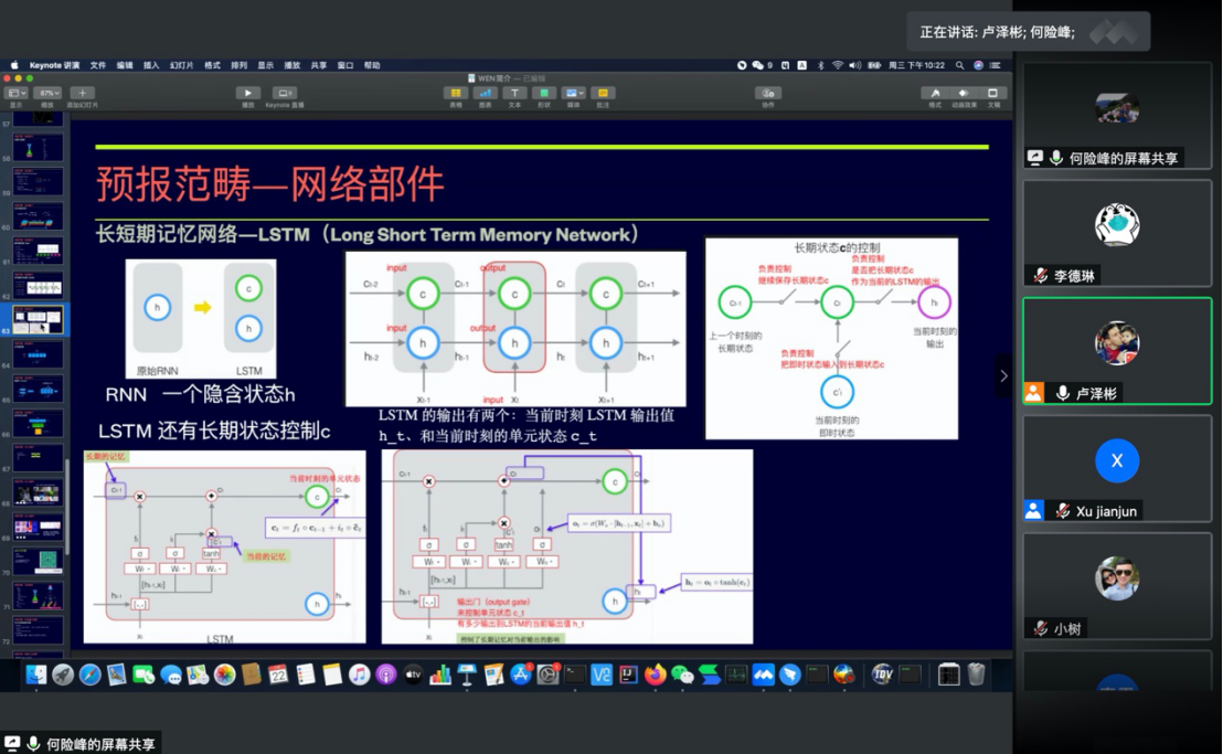 云讲座上,何险峰正研从做人工智能研发的初心讲起,深入浅出地讲解了时间、空间、实况和预报范畴的概念,并详细介绍了基于机器学习方法的短临多气象要素预报系统(WEN)的分布式计算、在线检验及业务预报质量。会后,与会人员就资料同化、暴雨预报、机器学习模式与数值模式的预报结果差别等问题展开热烈讨论,对今后的科研工作具有启发与指导意义。