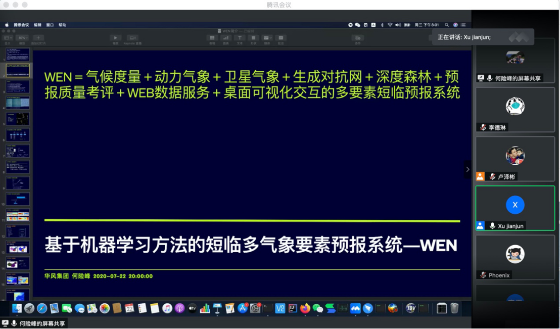 应南海海洋气象研究院邀请,7月22日,华风集团气象服务首席、正研级高工何险峰在腾讯会议平台作了题为《基于机器学习方法的短临多气象要素预报系统设计》的报告。该报告是“南海海洋气象灾害监测与预测预报”云讲坛的第七讲,由研究院院长徐建军教授主持,AC米兰中国官网、中国气象局、南京信息工程大学等单位的师生近百余人参与讲座。