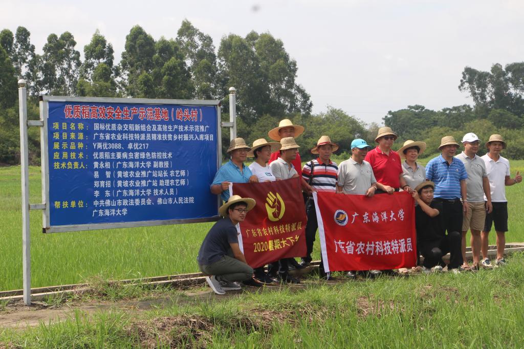 在科技特派员黄永相挂点服务的省级贫困村吴川市黄坡镇中山村,驻村第一书记扶贫干部冼伟明、精准扶贫合作企业吴川市黄坡镇中山经济合作社社长谢上清等陪同一行实地调研了该村优质水稻高效安全生产基地,参观了吴川市黄坡镇中山经济合作社优质米生产厂和产品展示场所,对科技特派员为该村送来优良水稻品种和栽培技术,与合作社对接进行科技扶贫表示充分肯定。专家们还就如何提高该村优质稻米生产水平给予指导,并建议将湛江印象与湛江八大景等文化元素融入优质米销售环节。科技特派员和专家们还为该村捐赠了果树施肥器与新型叶面肥。