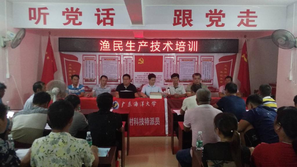 学院专家教授深入基层,开展技术培训,累计培训人员超过3000人。7月29日至8月20日,王学锋教授、李忠炉副教授与陈文河副教授等分别赴珠海市、茂名市和吴川市开展南海伏季休渔期渔民生产技术培训和渔船安全生产教育系列活动,共开展水产科技辅导报告18场。8月12日,由广东省渔业技术推广总站举办的“广东省渔业统计暨稻渔综合种养培训班”在江门台山市举行,汤保贵副教授为来自全省渔业推广系统100余名学员做了《海水稻渔共作模式与技术》的培训报告。8月12日孙成波教授为湛江市水产养殖户进行养殖尾水处理培训,指导农户进行养殖尾水处理。8月24日-27日朱春华教授等在广西玉林鑫坚种养公司开展《绿色引领下的水产养殖业发展与思考》专题培训,共58名学员参加。