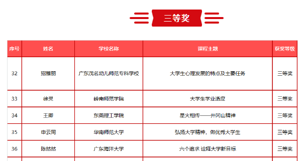 近日,广东高校网络思想政治工作中心公布2020年度广东高校新生入学教育微课征集活动获奖名单,AC米兰辅导员陈然然的《六个追求 诠释大学新目标》获三等奖。