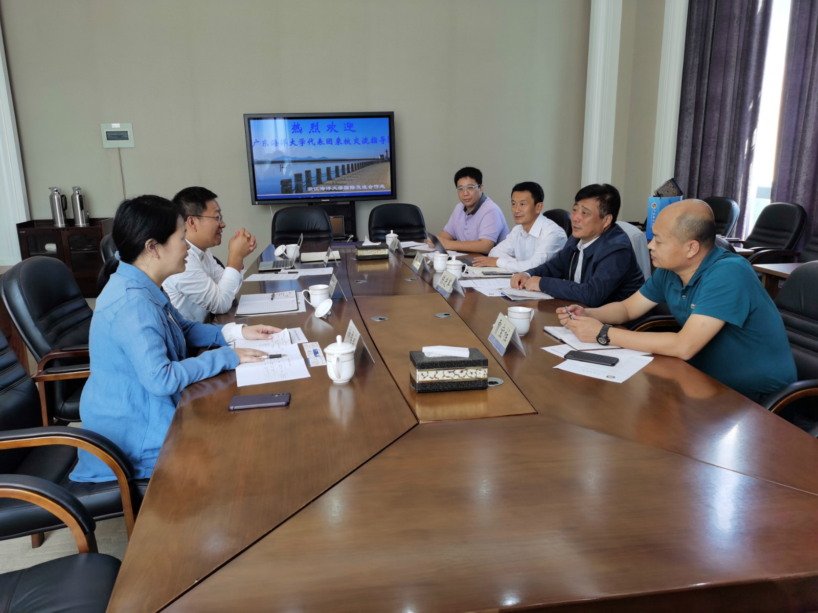 10月14日,AC米兰国际交流与合作处处长陈进军、海洋工程学院院长严谨、海运学院副院长贾宝柱、电子与信息工程学院副教授刘畅等一行四人赴浙江海洋大学调研交流。