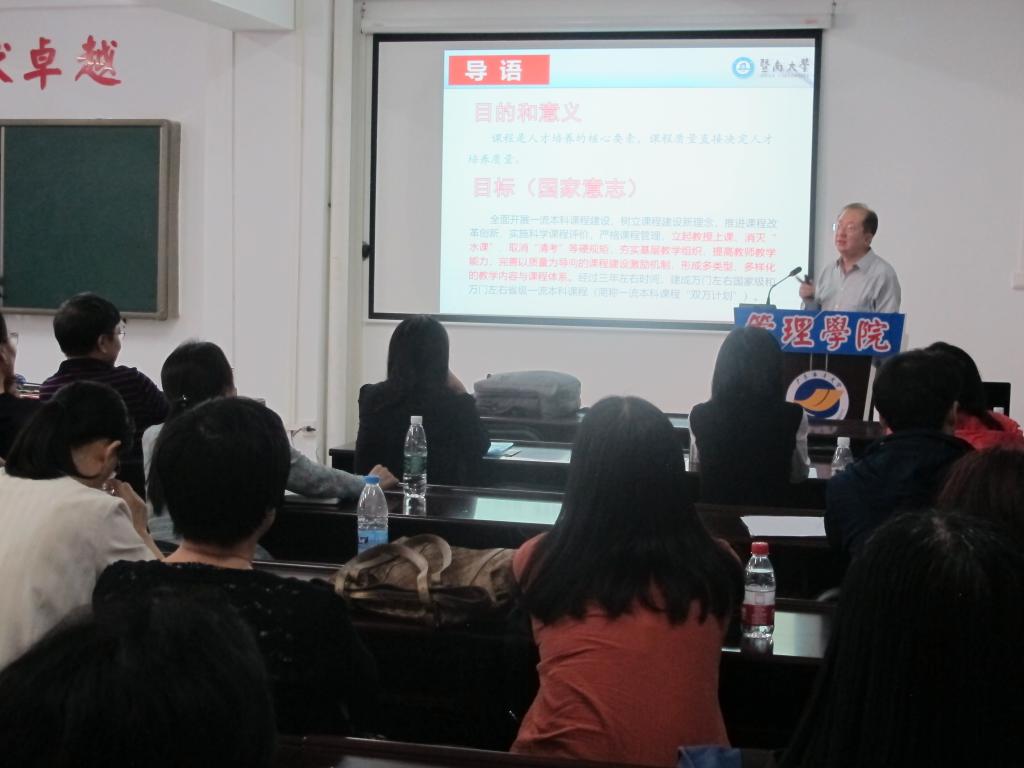 11月6日上午,暨南大学二级教授、博士生导师李从东应邀到管理学院作题为“如何建设国家一流本科课程”专题学术报告。报告会由代理院长白福臣主持,学院领导、各系主任及教师共50余人认真听取了李从东教授的精彩分享。