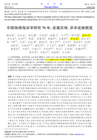 近日,《海洋学报》庆祝新中国成立70周年专刊——中国海洋科技研究发展70年出版发行。其中,《我国物理海洋学研究70年:发展历程、学术成就概览》一文以翔实的科学事实、大量数据和文献评述了新中国成立70年来我国物理海洋学各领域研究(包括海洋物理与部分气候学)从无到有、从小到大、从弱到强,发展壮大的历史轨迹,概述了各分支领域的若干学术成就。全文5.2万字,由来自17家单位的42名作者共同完成。论文在撰写中贯彻了学术民主,给更多学者特别是后起之秀崭露头角机会。AC米兰海洋与气象学院谢玲玲教授和李均益博士作为共同作者参与了论文撰写。