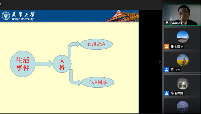 12月5日,学生处心理健康教育与咨询中心通过腾讯会议平台举办2020-2021学年第2期心理健康学生骨干培训,培训会邀请了天津大学詹启生教授和北京回龙观医院李献云主任医师作报告。各学院组织学生会心理部干部与班级心理委员集中在线观看。培训由学生处心理咨询中心主任刘国华副教授主持。