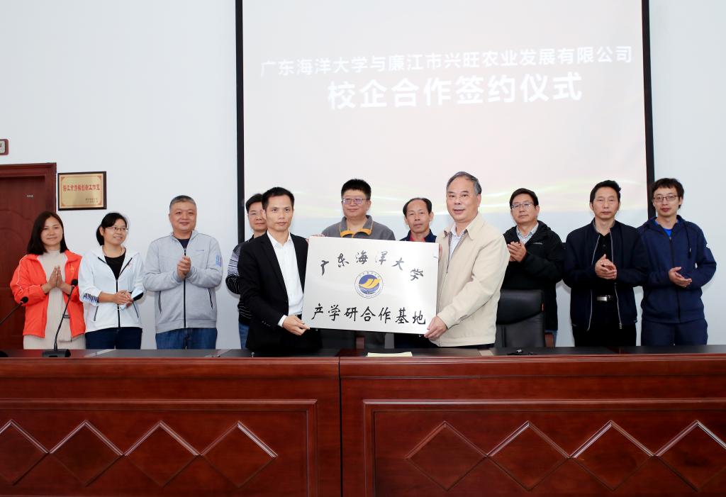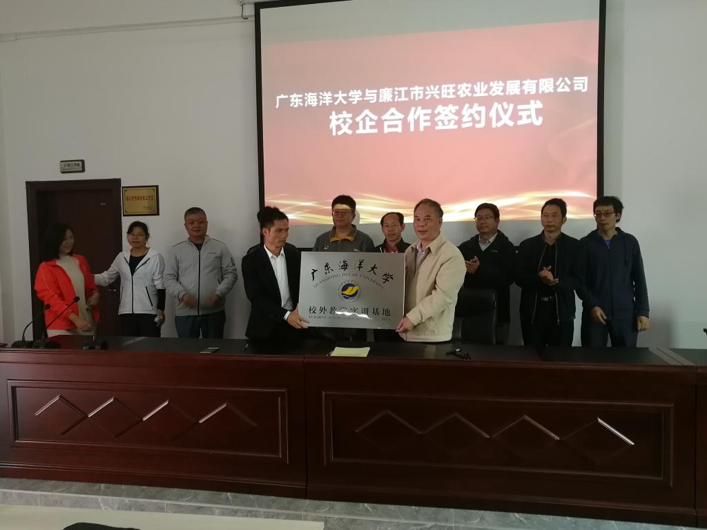 12月13号上午,滨海农业学院党委书记邓伟强率学院党委副书记陈嘉文、副院长殷学贵、马驿和学院部分老师到位于廉江市良垌镇的廉江兴旺农业发展有限公司商讨校企合作事宜,并与公司董事长、全国劳动模范全王新签订了共建校外实训基地与产学研合作协议,并授予牌匾。