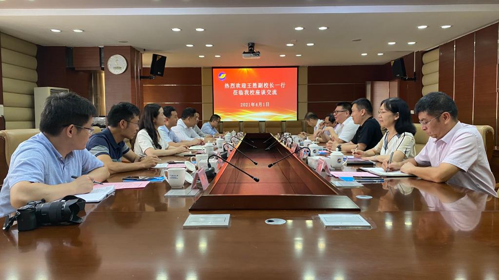座谈会上,谭北平代表学校对王胜副校长一行到来表示热烈欢迎。谭北平详细介绍了学校的办学历史、办学规模以及 “冲补强”提升计划建设、科技创新与研究生培养等情况。他指出,目前湛江正迎来粤港澳大湾区建设及省域副中心城市建设两大历史发展机遇,驻湛高校应加强校际合作,联手抢抓良机,共同助力湛江经济社会的发展。