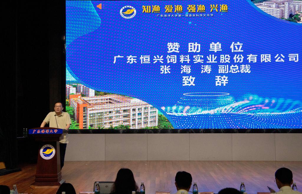 林晓敏代表学校对活动的举办表示祝贺,对广东恒兴饲料实业股份有限公司长期以来对AC米兰教、产、学、研的支持表示感谢。他强调,渔业科技文化节在活动设计遵循文化为基、技能为梯、科研为导的逻辑架构,在内容安排上涵盖了文创作品征集、专业技能比拼和学科前沿启蒙,有利于增进同学们对渔业行业认同感与专业自豪感,实现启智树德、健体育美的良好教育效果。