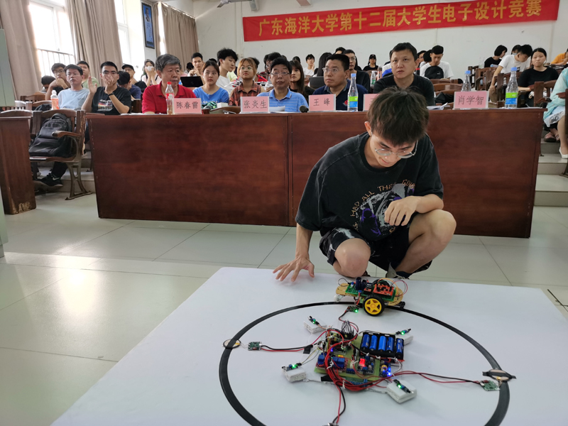 5月9日,学校第十二届大学生电子设计竞赛在湖光校区钟海楼03020、03022教室举行。本次比赛由校团委主办、电子与信息工程学院承办。电子与信息工程学院副院长张炎生、学院王骥教授等10位专家受邀担任评委,来自全校晋级决赛的16支队伍及观众共200多名学生参加。