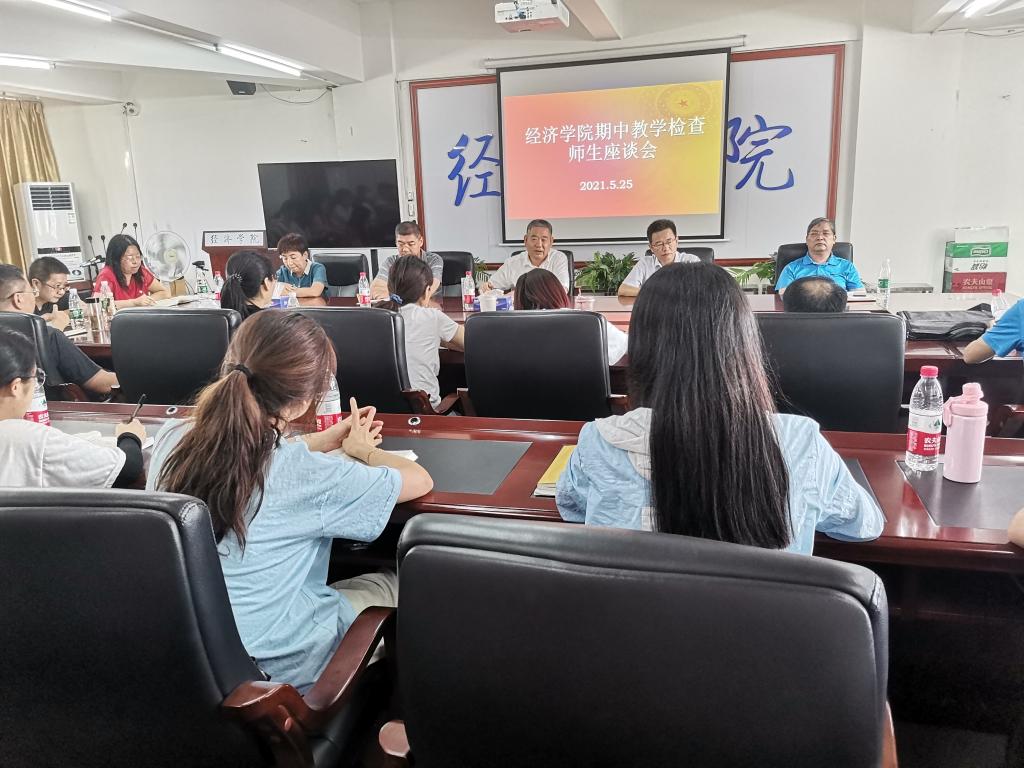5月25日下午,经济学院在主楼718会议室举办了期中教学检查师生座谈会。学院领导、系主任、全体辅导员、研究生和本科生代表近50人参加了会议。会议由副院长杨新华主持。
