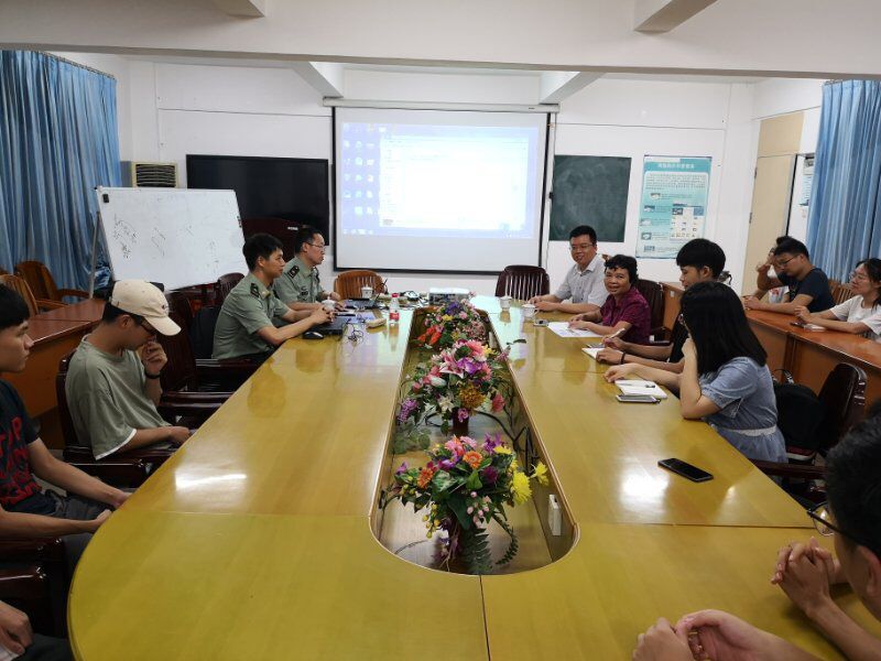 6月18日下午,国防科技大学气象海洋学院的臧增亮、李小勇老师来到海洋与气象学院举行研究生招生宣讲会。宣讲会在湖光校区海博楼会议室举行,学院党委副书记刘宏英、王磊教授、辅导员王兴龙以及有报考国防科技大学意向的海洋科学、大气科学、海洋技术等专业的本科生、硕士研究生参加了会议。王磊教授主持了宣讲会。