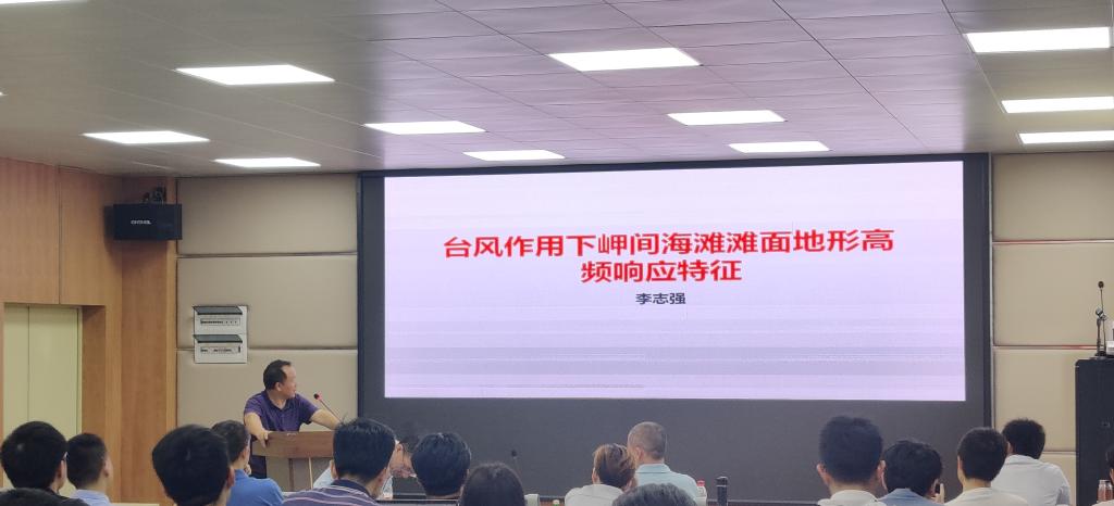 本次会议共组织了16场学术报告,其中6场为本校研究生所做报告。在报告开始之前,物理海洋、海洋气象、海洋化学和边缘海地质学各个学科方向均派代表老师在会上针对各自方向的近期研究作了简单汇报。学科方向汇报完成后,学术报告专场正式开始,李志强教授首先台为我们介绍了风作用下岬间海滩滩面地形高频响应特征,随后代替未能到场参会的张鹏老师作了题为“Long-term red tide outbreaks, nutrients pattern under the climate change and anthropogenic pressures in the Zhanjiang Bay, China”的学术报告。彭诗云、韩利国、罗亚飞、谢辉、李高聪、李敏、梁梅和李君益等多位老师都就各自领域的最新研究进展作了精彩纷呈的汇报。另外AC米兰的陈国生、陈莹、黄润琪、冯伟家、陆旋和王焕等多位优秀研究生也就自己研究内容进行了汇报。现场讨论激烈,氛围浓郁,学术会议取得良好效果。