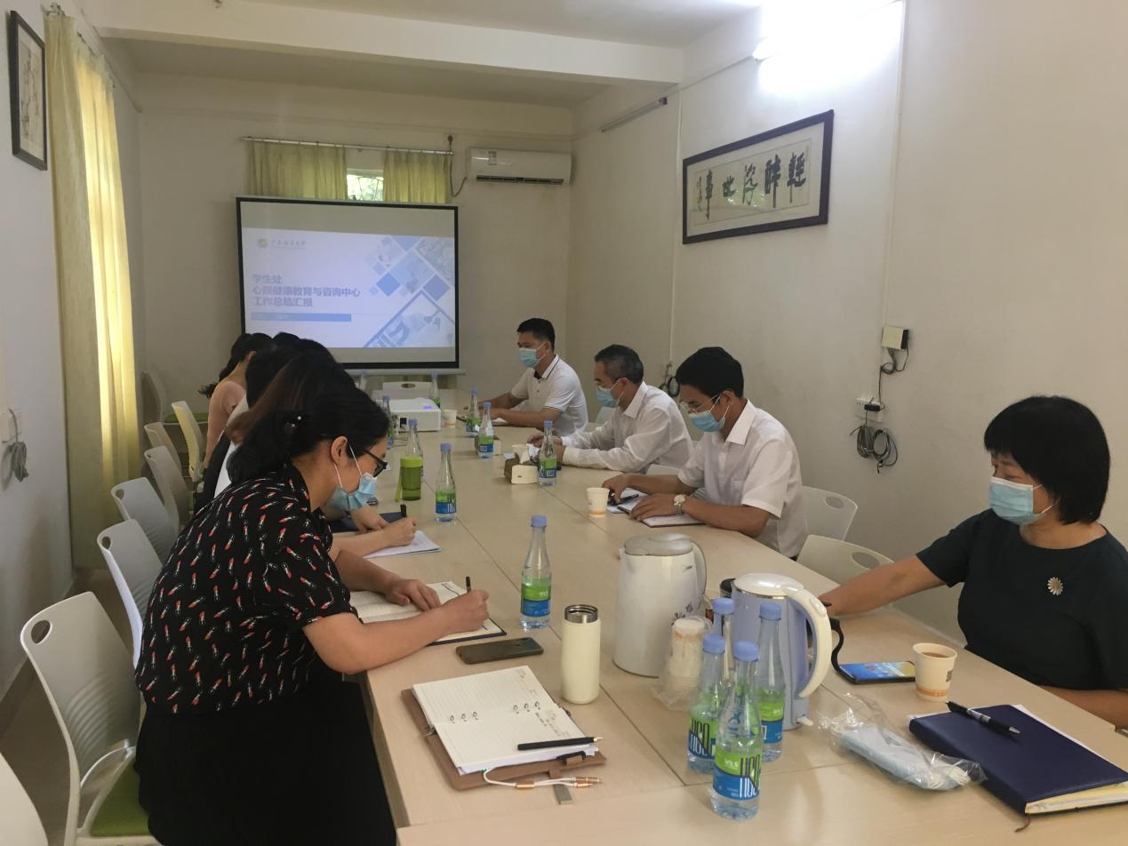 6月11日下午,学校党委书记曹俊明、副书记林晓敏一行到学生处调研心理健康教育工作,学生处处长尹喜,副处长邓朝晖,心理健康教育与咨询中心全体人员参加了调研座谈会。