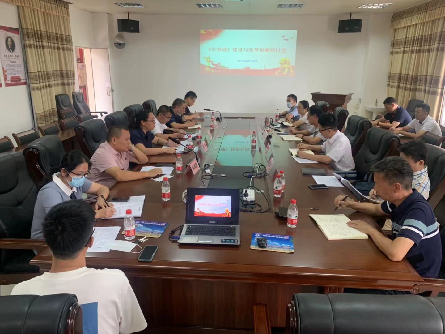 6月23日,为深入贯彻落实教育部、中央军委国防动员部《普通高等学校军事课教学大纲》《普通高等学校军事课建设标准》精神,聚焦《军事课》党史学习教育“三进”工作,扎实推进《AC米兰中国官网军事课标准化建设实施方案》落地见效,马克思主义学院在湖光校区钟A05014会议室召开了《军事课》建设改革创新研讨会,学院领导班子及军事教研部正副主任、部分任课教师代表共15人参加了会议,学院党总支书记宋玉忠主持。