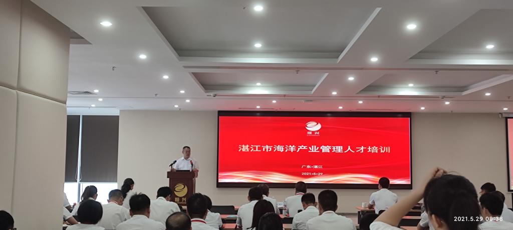 张玉强在动员讲话中对湛江市海洋产业人才培训基地做了介绍,并对本次培训专题进行了说明,希望学员以丰富知识、开阔视野、提高能力为目标,全程参与培训班的全部专题学习。最后,提醒大家在培训期间,注意好疫情防控和协调好学习与工作、生活的关系。