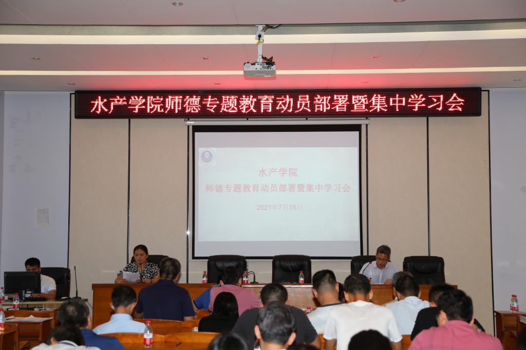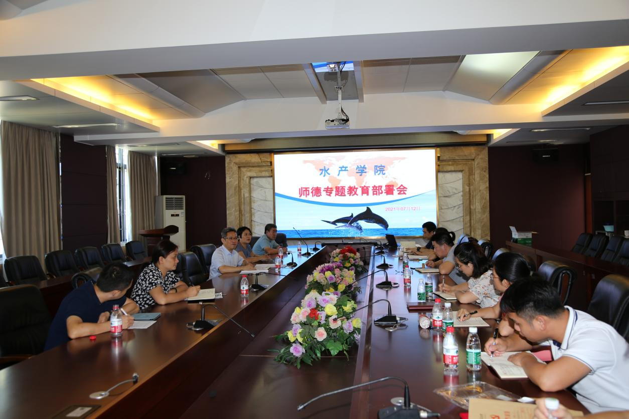 据悉,为了更加高效有序地开展好师德专题教育工作,水产学院于7月12日上午在水产楼216室召开学院领导、党委委员及院属各单位负责人、支部书记、团委书记会议,就学院开展师德专题教育工作进行了专题研究和部署。