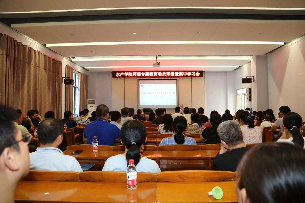 为全面贯彻落实习近平总书记关于教育的重要论述和全国全省教育大会精神,深入落实《中共中央国务院关于全面深化新时代教师队伍建设改革的意见》,推进实施教育部等七部门《关于加强和改进新时代师德师风建设的意见》,根据学校有关文件精神与要求,7月15日上午,水产学院召开师德专题教育动员部署暨集中学习会。会议由学院党委书记梁朝辉主持,学院教职工100多人参加了会议。