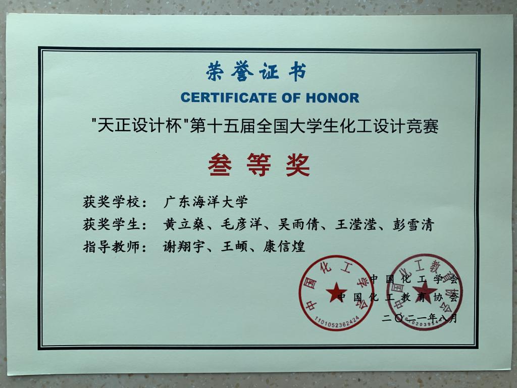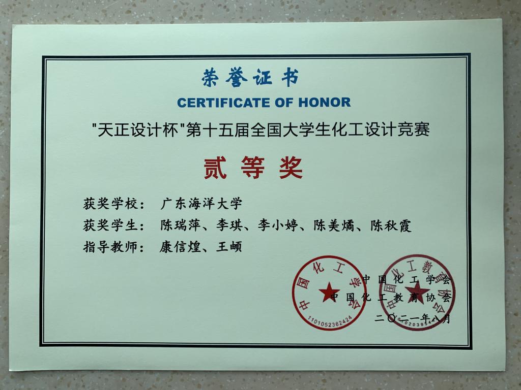 近日,由中国化工学会、中国化工教育协会共同举办的第十五届“天正设计杯”全国大学生化工设计竞赛在厦门大学落下帷幕,由化学与环境学院学生组成的4支竞赛队伍表现突出,荣获全国二等奖1项(同时获得华南赛区一等奖)、三等奖3项。