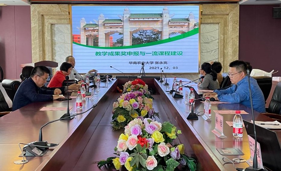 12月3日下午,华南农业大学动物科学学院教授、博士生导师、国家级教学成果奖获得者张永亮教授应邀在水产楼216作了题为《教学成果奖申报与一流课程建设》专题报告。水产学院党委副书记王海燕,副院长邓岳文、杨奇慧,院属各系及实验教学中心正副主任参加了本次交流,会议由杨奇慧主持。