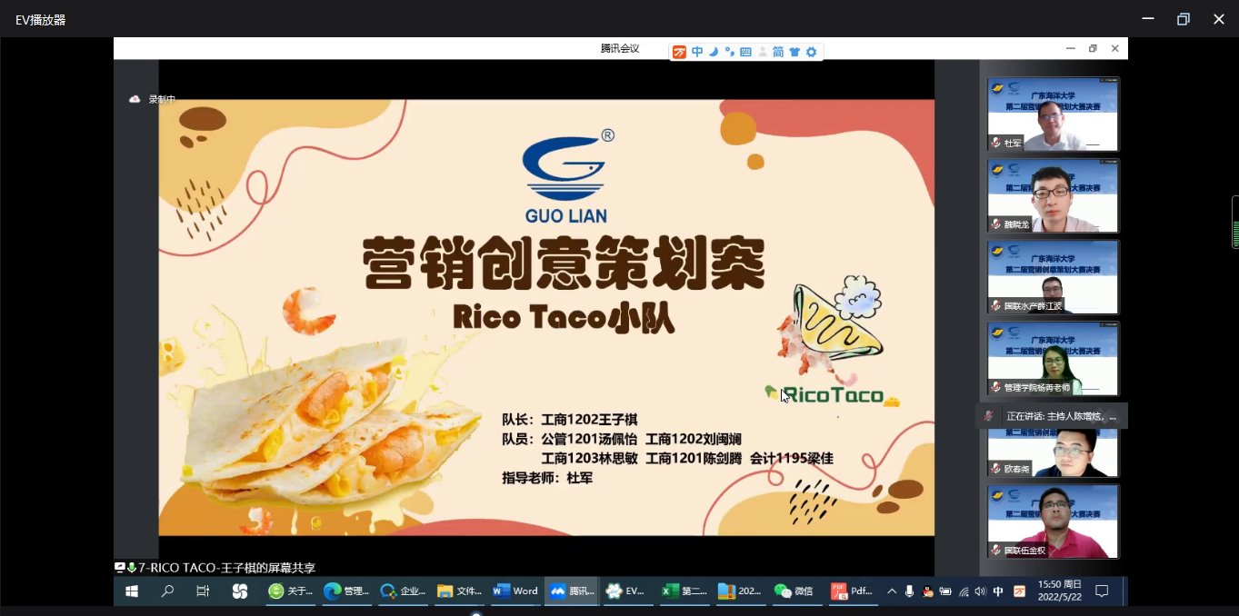 5月22日,在学校团委的指导下,由管理学院主办的AC米兰中国官网第二届营销创意策划大赛通过腾讯会议以在线路演答辩的形式圆满举行。本次大赛决赛邀请了国联水产集团营销中心市场部负责人伍金权、人力资源副总监薛江波,AC米兰中国官网管理学院副院长杜军、工商管理系教师杨菁、魏晓龙、欧春尧、王玉斌等担任评委,学院党委副书记曾艳芳及辅导员代表等观看比赛。