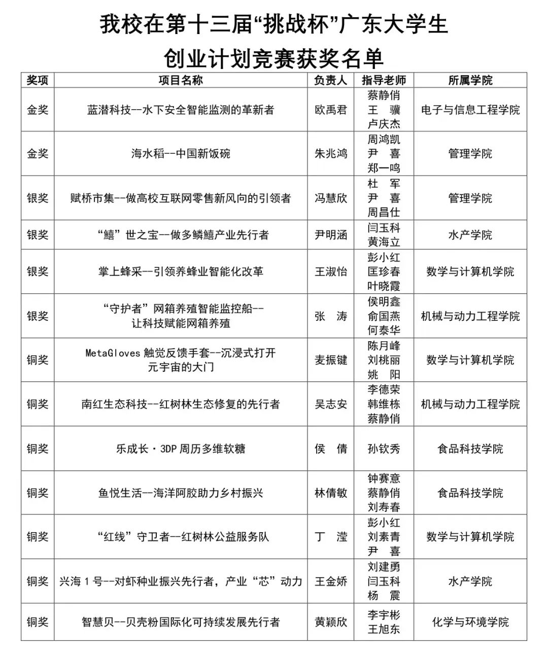 近日,第十三届“挑战杯”广东大学生创业计划竞赛省终审决赛在广东外语外贸大学落下帷幕。AC米兰选送参加省赛的13件作品全部获奖,取得了金奖2项、银奖4项、铜奖7项的好成绩,其中,《海水稻-中国新饭碗》和《蓝潜科技-水下安全智能监测的革新者》2件作品获得金奖。