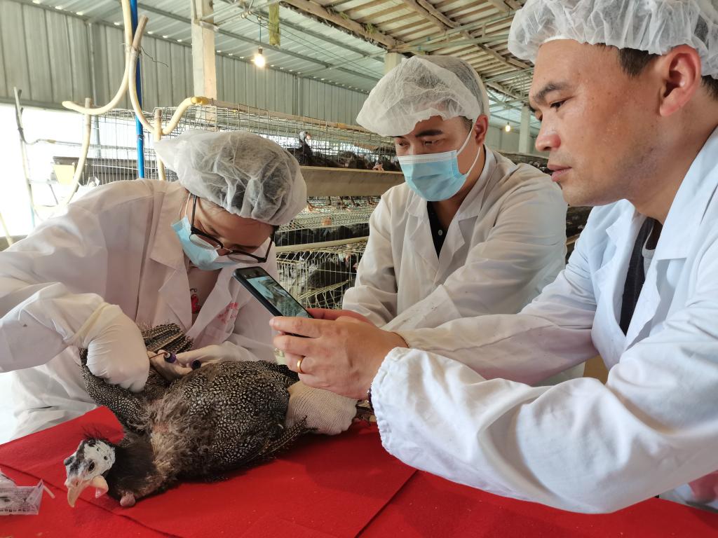 在连续几天紧张而快节奏的工作中,鸡舍内的闷热环境采样测定操作令严实密封的防疫工作服汗水湿透,不时又遇上雷雨天气,工作环境时有掉闸停电,给测定和拍摄工作带来诸多不便,但大家依然坚持始终,以高度责任心顺利完成了国家畜禽遗传资源的精准鉴定工作。