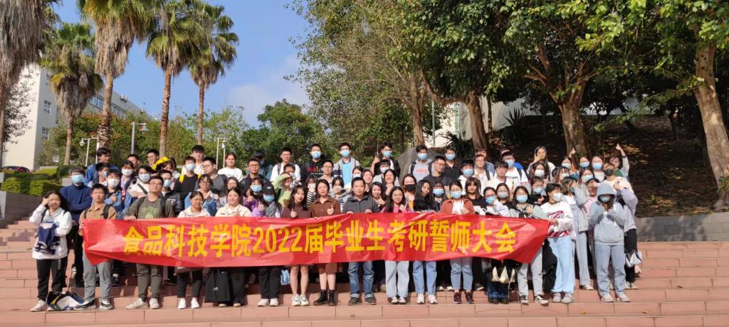 近日,食品科技学院考研工作捷报频传。学院2022届本科毕业生370人,报考研究生(含推免生和国外深造研究生)170人,上线91人,录取65人,报考率45.95%,上线率24.59%,录取率为17.57%,其中不少同学被中国科学院微生物研究所、江南大学、中国海洋大学、华南理工大学、哈尔滨工业大学、香港科技大学、英国利兹大学等国内外工科名校录取。学院被评为学校2022年考研工作先进单位。