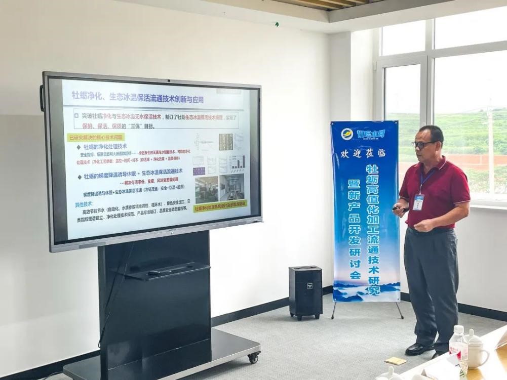 在随后举行的乳山牡蛎加工流通技术研讨会上,秦小明教授作了《牡蛎精深加工技术研究与新产品开发》主题分享,国家贝类产业技术体系5名岗位专家分别就产业经济、副产物加工利用、苗种繁育、病害防控等方面作了专题报告,并与参会的企业家们进行了座谈交流,共同探求乳山牡蛎产业可持续发展之路。