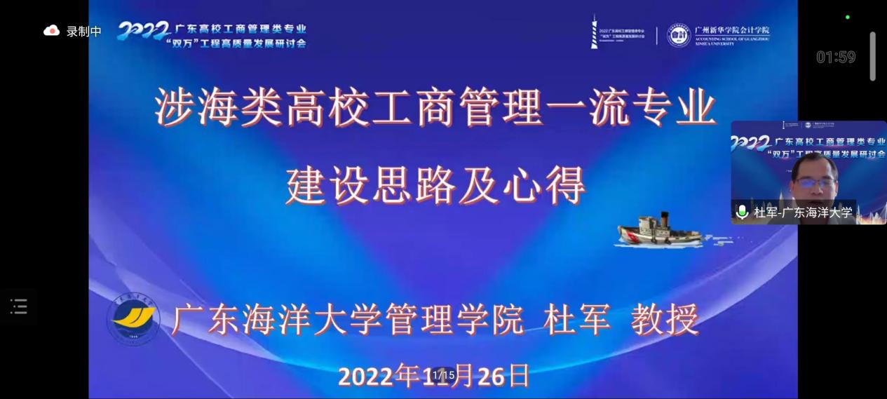 为深入实施新时代高等教育育人质量工程,建设高质量人才培养体系,11月26日,管理学院组织专业系主任和骨干教师参加由广东省本科高校工商管理类专业教学指导委员会举办的“2022广东高校工商管理类专业‘双万’工程高质量发展研讨会”线上会议。AC米兰管理学院副院长杜军教授应邀作专题分享报告。