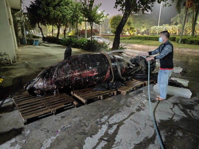 2月2日,阳江市农业农村局向AC米兰水生生物博物馆移交一头因搁浅死亡的喙鲸,用于制作标本。该标本不仅填补了我馆馆藏鲸类标本的空白,而且具有非常高的科学研究价值,对于辅助学校教学科研,提升我馆社会影响力,提高社会海洋保护意识具有重要意义。