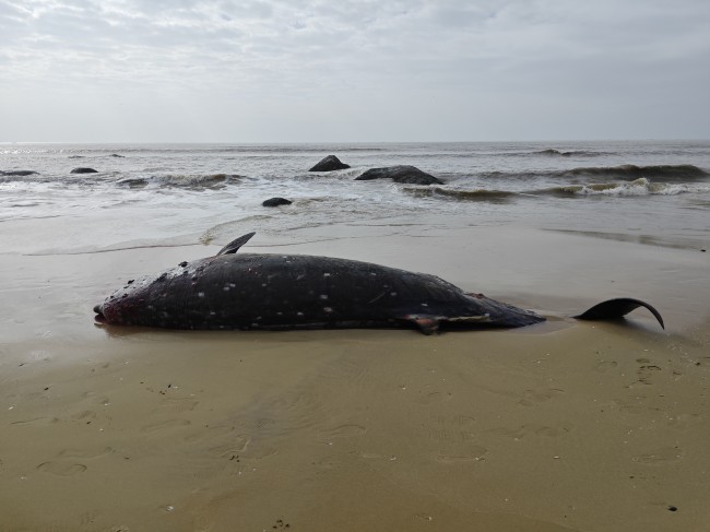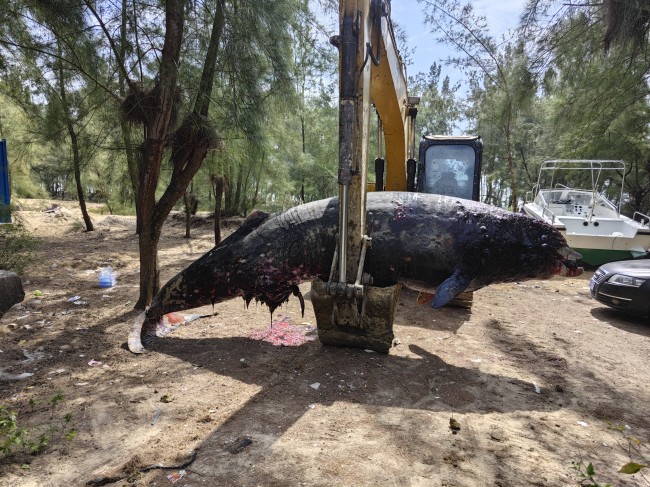 该喙鲸(具体物种暂未确定)于1月31日在阳江市阳东区大沟镇海头海域被发现搁浅,经救援人员合力推入大海后,2月1日傍晚发现其重新搁浅死亡。据中国科学院深海科学与工程研究所研究员李松海介绍,喙鲸是鲸目齿鲸亚目喙鲸科动物的统称,目前认为共计6属23种,约占已知现存鲸类物种的25%,是所有海洋哺乳动物中最鲜为人知的动物。喙鲸主要生活在深海水域以进行长时间的深潜觅食,它的神秘除了可能还有潜在的新物种未被发现,还体现在其活体在野外难以被观察到。