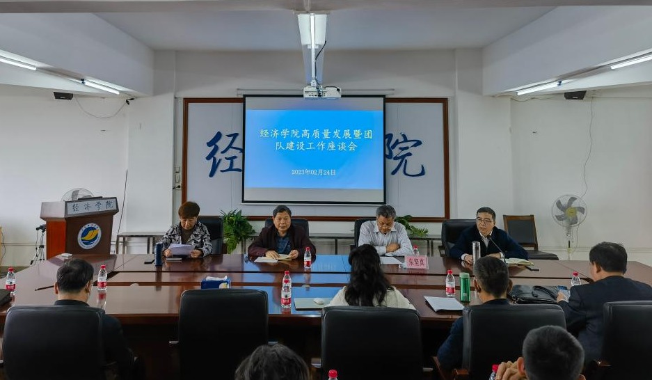 2月24日上午,经济学院在广学楼718会议室召开了学院高质量发展暨团队建设工作座谈会。学院领导班子、系(办)正副主任、教授、副教授及近三年新入职的教师代表共50余人参会。主持学院行政工作的副院长陈伟教授主持会议。