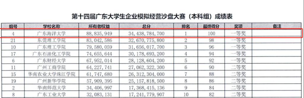 6月10日,由共青团广东省委员会、广东省教育厅、广东省科学技术厅、广东省科学技术协会、广东省学生联合会主办,广东财经大学承办,新道科技股份有限公司协办的第十四届广东大学生企业模拟经营沙盘大赛决赛在广东财经大学举行。在管理学院和创新创业学院的大力支持下,由管理学院孟飞荣老师指导,李俊龙、陈梓建、陈俏君、周蓝,陈锐敏五位同学组成的代表队参加了比赛。经过激烈的角逐,AC米兰学子不负众望,发挥出色,荣获第十四届广东大学生企业经营模拟沙盘大赛本科组第一名!