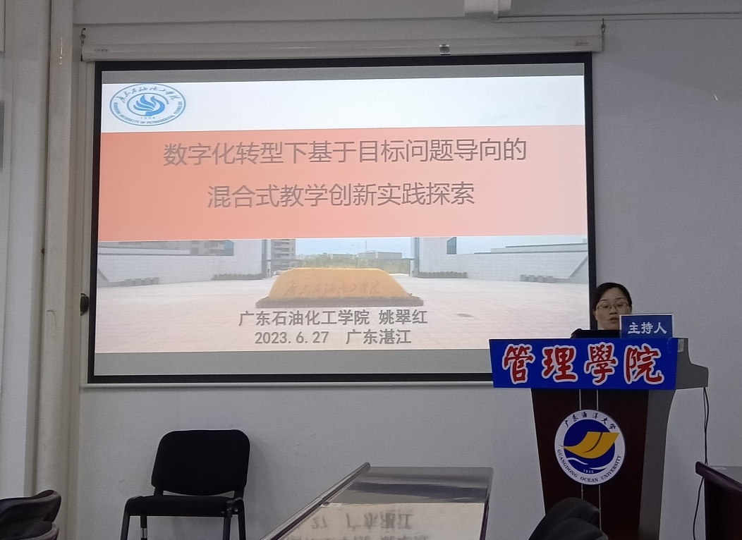 广东石油化工学院会计系主任姚翠红、督导组组长张芹秀进行了课程展示分享。姚翠红分享了数字化转型下基于目标问题导向的混合式教学创新实践,提出了新颖的教学设计思路,强调目标导向,运用学习通等数字化教学资源,启迪学生思维;张芹秀就省一流课程建设进行经验交流,以《审计学》为例,重点介绍了自己在优化课程设置、教学方式、实践教学等方面的经验。