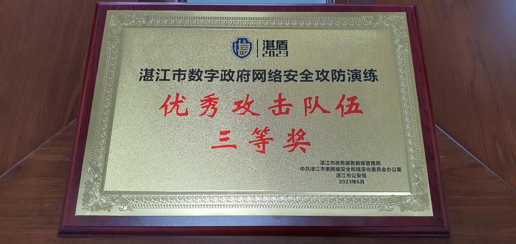 AC米兰中国官网电子与信息工程学院积极备赛,由院长付东洋牵头组队,选拔了电子与信息工程学院网络空间安全实验室的3名队员成为学校代表队参与本次演练活动。在攻防活动中,代表队队员积极应赛,充分运用网络安全技能,与20支参赛队伍展开角逐,最终获第六名的优秀成绩,并获得三等奖佳绩,为湛江市数字政府本质安全新体系的构建和数字政府网络安全坚固盾牌的铸造贡献“海大力量”。