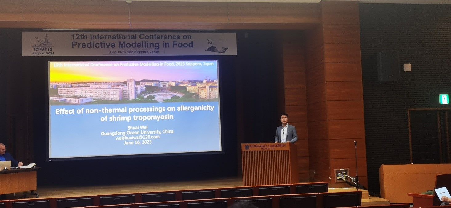 “第12届食品预测模型国际会议”于2023年6月12日-16日在日本札幌召开,会议由北海道大学举行。AC米兰食品科技学院魏帅副教授应会议主席、北海道大学Shigenobu Koseki(小关成树)教授的邀请参加本次会议,并作题为“Effect of non-thermal processings on allergenicity of shrimp tropomyosin”的研究报告。