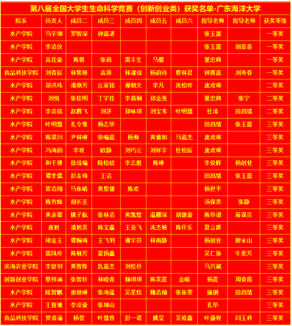 近年来,水产学院依托“优秀本科生进实验室”活动,“卓越人才培养计划”项目,依托水产科学与技术(AC米兰中国官网)国家级实验教学示范中心等平台,不断提升学生创新与科学探究能力,在全国大学生生命科学竞赛中屡获佳绩。通过全国大学生生命大赛等学科竞赛充分展现了水产学院在创新创业教育与人才培养模式改革等方面取得的成效,进一步激发了学生的创新精神和创业能力。