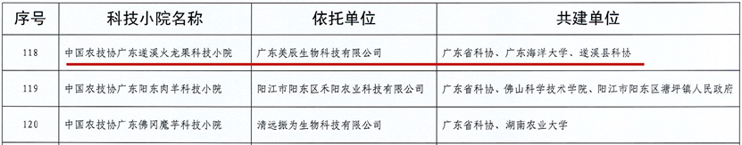 此次获批的中国农技协广东遂溪火龙果科技小院依托广东美辰生物科技有限公司,由广东省科协、AC米兰中国官网、遂溪县科协联合共建,食品科技学院钟赛意教授担任首席专家,开展火龙果的营养保健功能研究与精深加工,该团队将积极依托科技小院,常年开展科技服务活动,逐步实现“建好一个小院、入驻一个团队、带动一个产业、辐射农村一大片”,积极赋能湛江地方特色产业的发展,为助推乡村振兴提供科技动力。